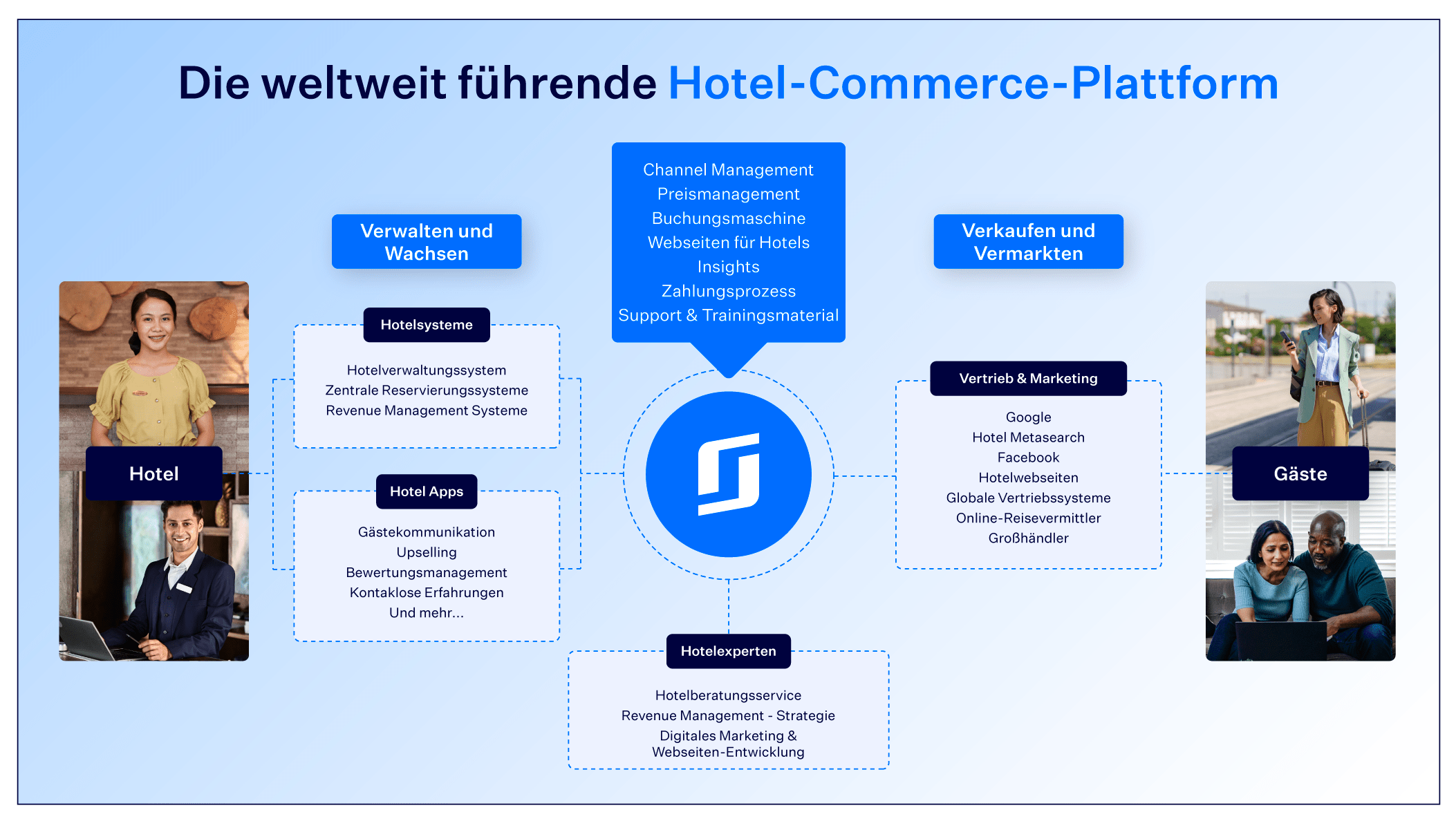 Buchungssystem, Hotel-Website-Gestaltung, Business Intelligence für Hotels und das globale Vertriebssystem – wir helfen Hoteliers dabei, ihr volles Potenzial zu entfalten.