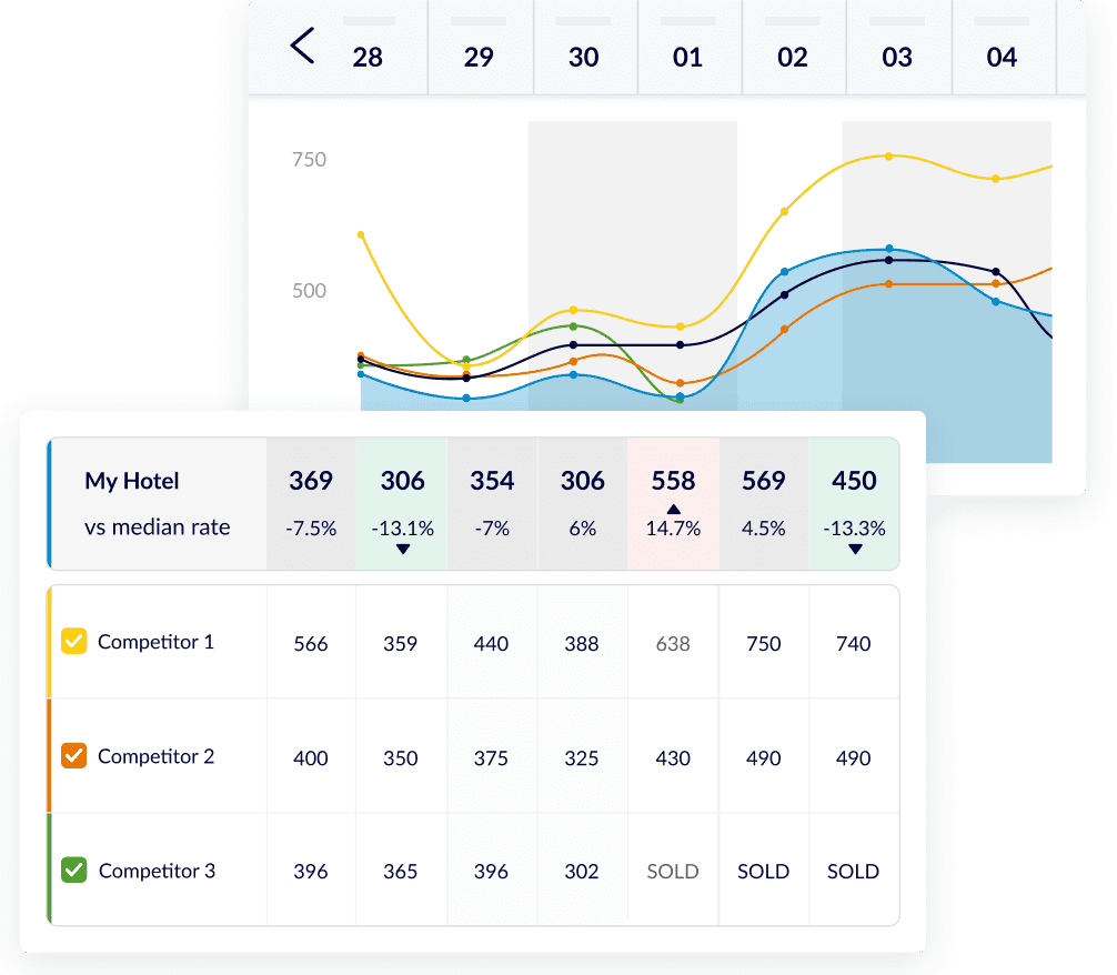 With up to 10 competitors in a single dashboard view, it’s easy to know your competitor’s like-for-like room rates.