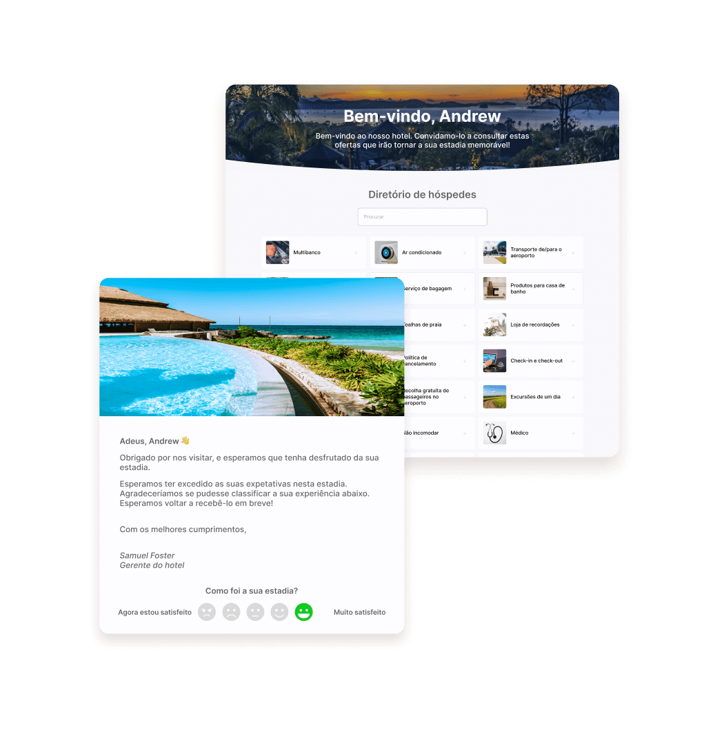 Comunique de forma eficaz, personalize experiências e aumente a receita por hóspede. Ofereça uma experiência de check-in digital, envie ofertas de vendas incrementais personalizadas, peça feedback aos hóspedes e muito mais.