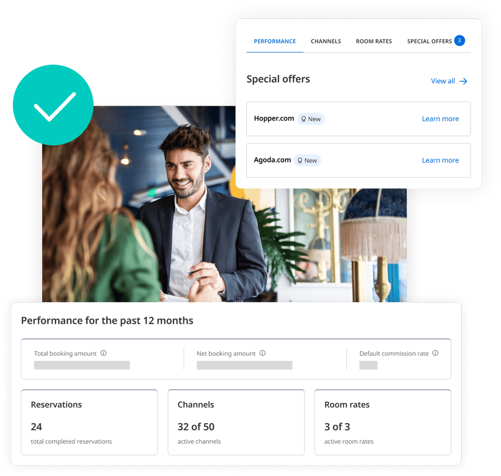 Channels Plus will help improve and diversify your hotel’s presence on various online travel agents (OTAs such as Trip.com and Traveltino) while removing the hassle of multiple channel management and reconciliation. Not only will you be able to connect in moments, but Channel Plus will also help boost reservations generated without an increase to the admin effort that comes with individually managing your current OTA connections. With Channels Plus, properties can extend their available inventory to a wider audience, increasing their ability to drive more bookings and increase revenue.