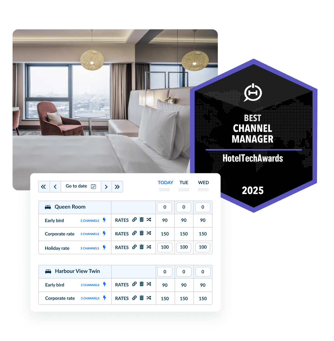 ขายห้องพักทุกห้องของโรงแรมคุณจากที่เดียวกันด้วยตารางสินค้าที่ใช้งานง่ายและโมเดลสินค้าที่รวมกัน ที่ได้รับการสนับสนุนจากระบบ PMS ที่ไม่มีรอยต่อที่เสถียร