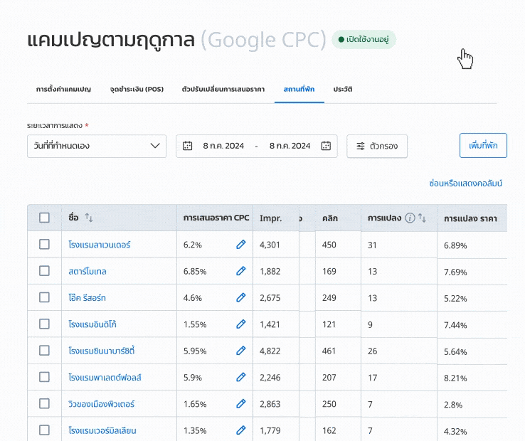 ขับเคลื่อนความสำเร็จของประสิทธิภาพการค้นหาแบบเมตาในพอร์ตโฟลิโอโรงแรมของคุณสู่ระดับใหม่ด้วยแพลตฟอร์มจัดการด้วยตนเองอันทรงพลังและเป็นหนึ่งเดียวของเรา