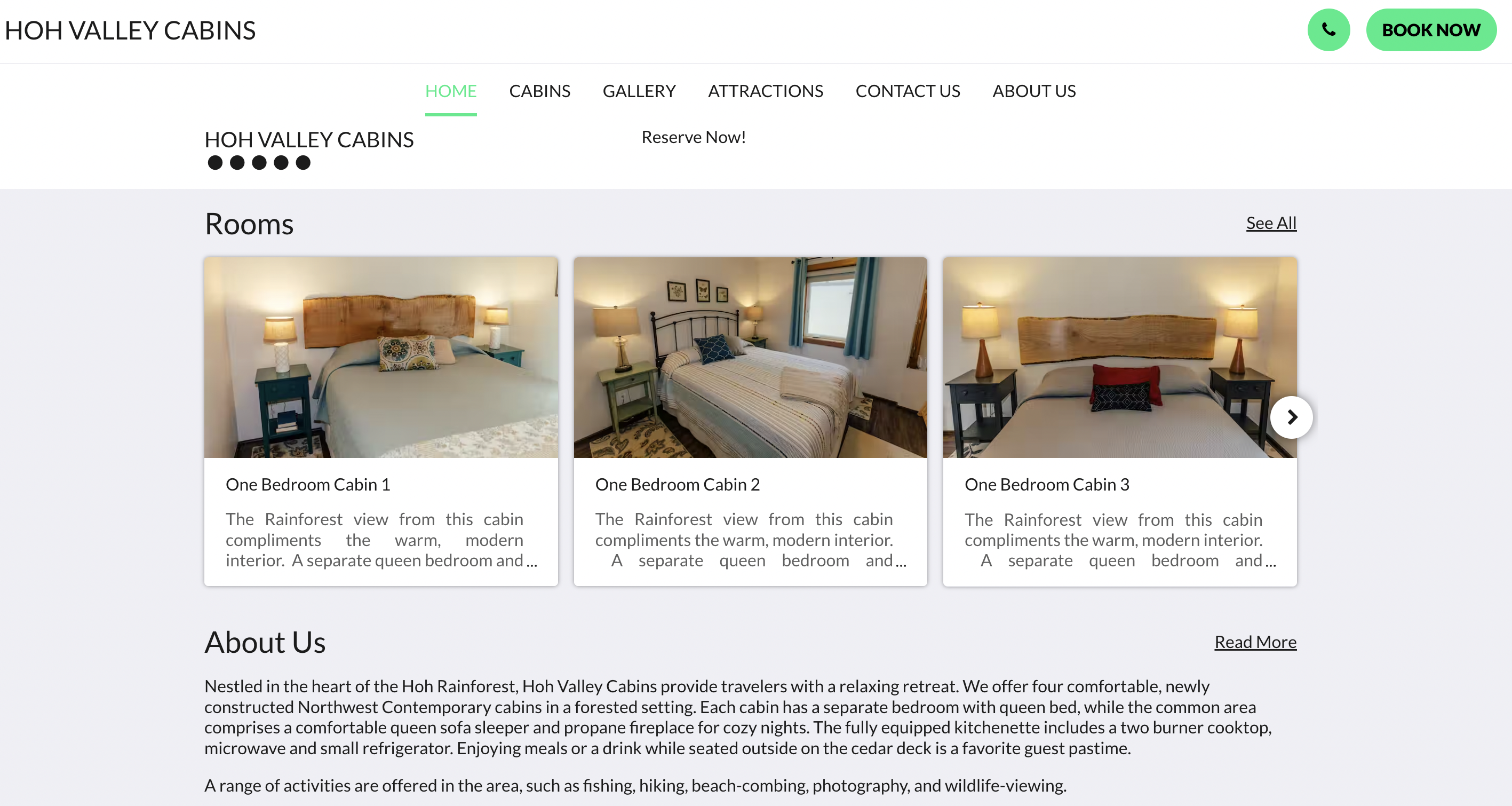 Hoh Valley Cabins knows that its visitors are looking for the most crucial information as soon as they land on the page.