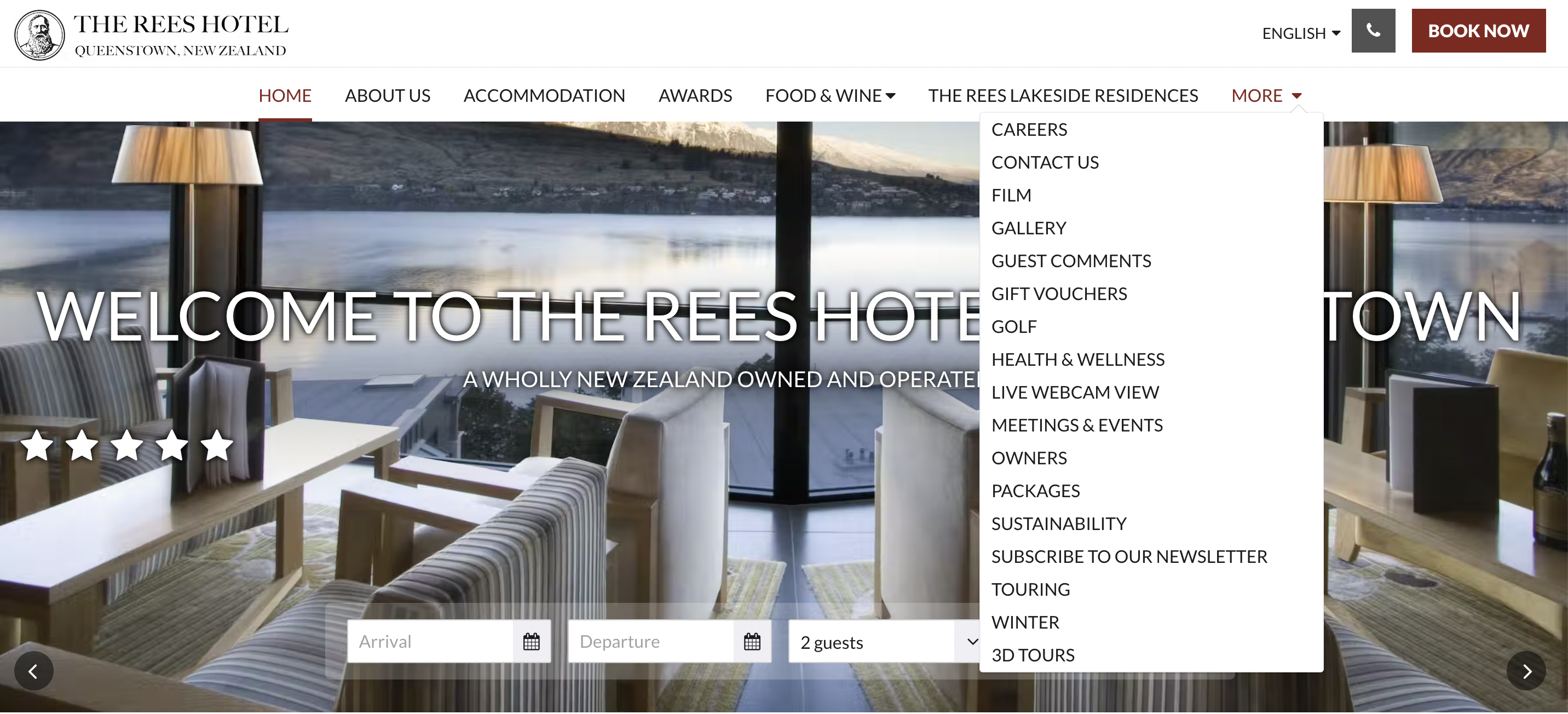 The Rees Hotel is making great use of its menu and navigation options, using SiteMinder’s website builder.