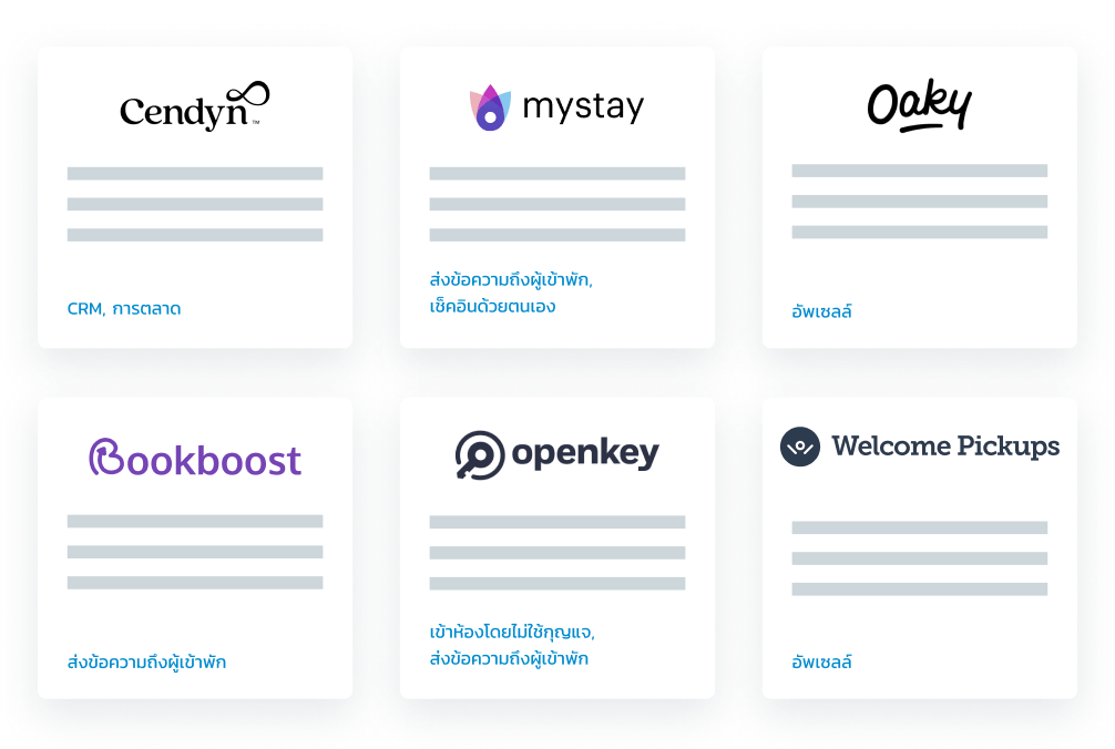 ขยายการเข้าถึงของคุณโดยเชื่อมต่อกับเมตาเสิร์ช เครือข่าย corporate travel network และ OTAs ทั่วโลกและท้องถิ่นหลายร้อยรายการ ทำให้กระบวนการตรวจสอบแขกเป็นแบบอัตโนมัติฉับไว