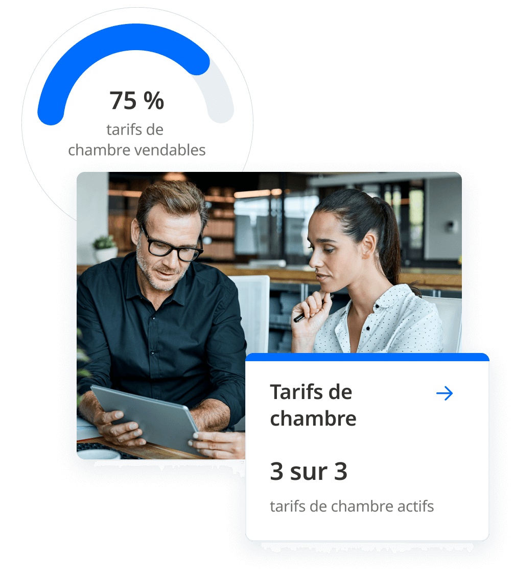 Gardez le contrôle grâce à un tableau de bord centralisé intégrant canaux, tarifs de chambre et performances de réservation.